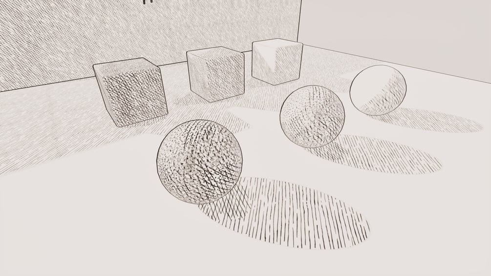 - Different Hatching Styles (hatching wraps around the geometry, select differnet hatch textures, adjust where hatching appears and more)