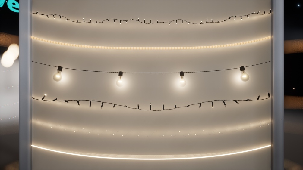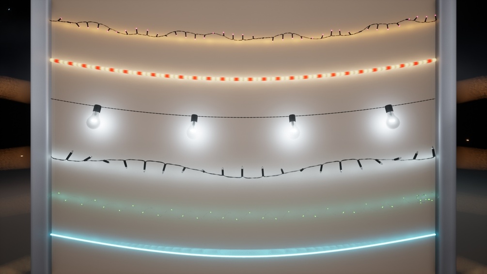 String Lights is a blueprint tool for Unreal Engine that allows you to quickly create string lights as spline meshes in your scene. There are 6 unique types of String Lights, which can all be easily adjusted to your needs.